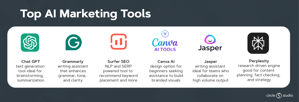 Searching for how many digital marketing AI tools exist will result in numbers that range from thousands to millions. While the number of tools has exploded in recent years, there are a few that stand out for their ability to assist with content ideation, editing, and distribution. Here are some top AI marketing tools teams should consider integrating into their workflows: