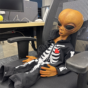 Meet “Ricky”—the alien that Mark snuck into someone’s chair at the studio one day—much to their surprise! We’re sure that many former interns have memories of having him show up unexpectedly. And yes, Mark, your mischief lives on.