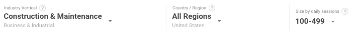 For example, a construction firm could choose websites under the industry vertical “Construction and Maintenance” that are within the United States and that have average daily sessions between 100 and 499. Google Analytics then instantly compares those average data points to your own website data.