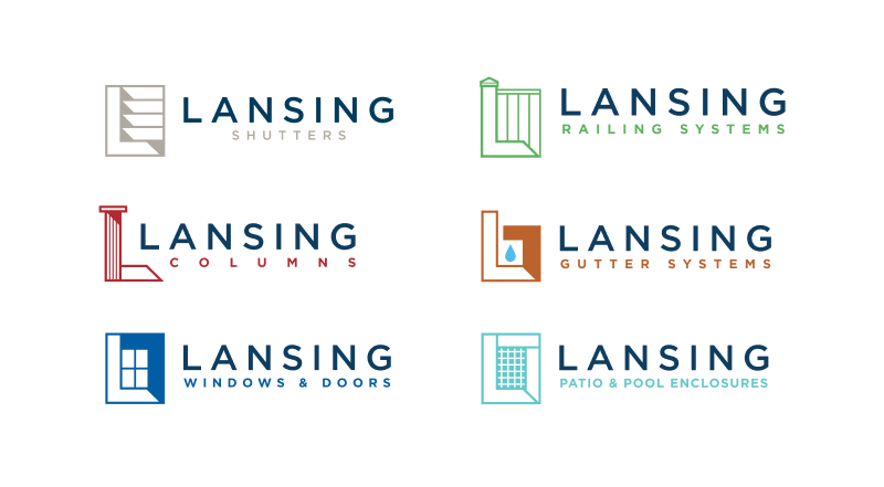 An evolution of their existing logo to both create a new mark and translate it to represent the various products Lansing offers.