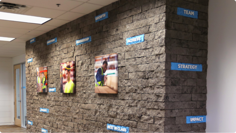An enhanced environment to celebrate the exterior products Lansing sells–bringing the exterior inside–and honoring those both on the frontline and in the warehouses.