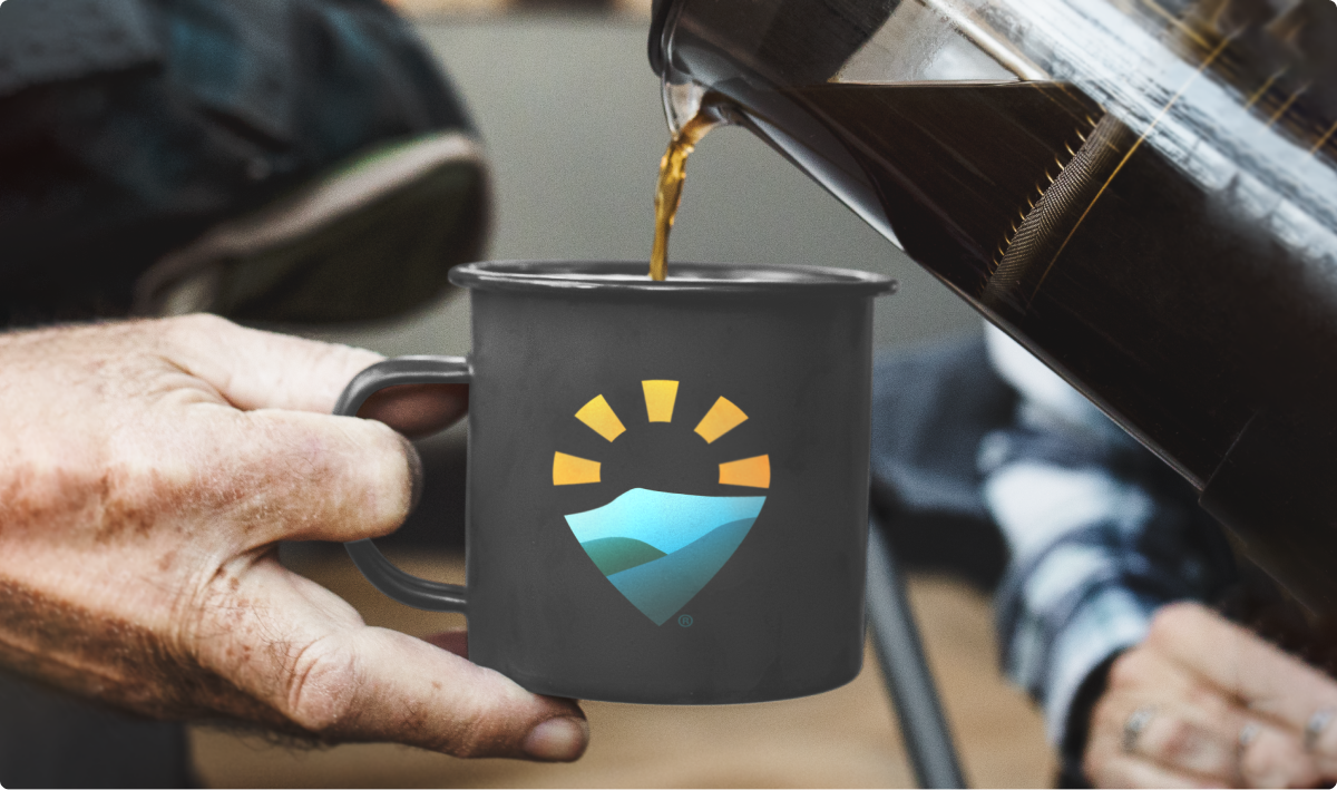 Inspired by a map pin to emphasize “here” in the tagline, Rockingham’s emblem also features the Massanutten mountain as a nod to its roots in Harrisonburg, Virginia.